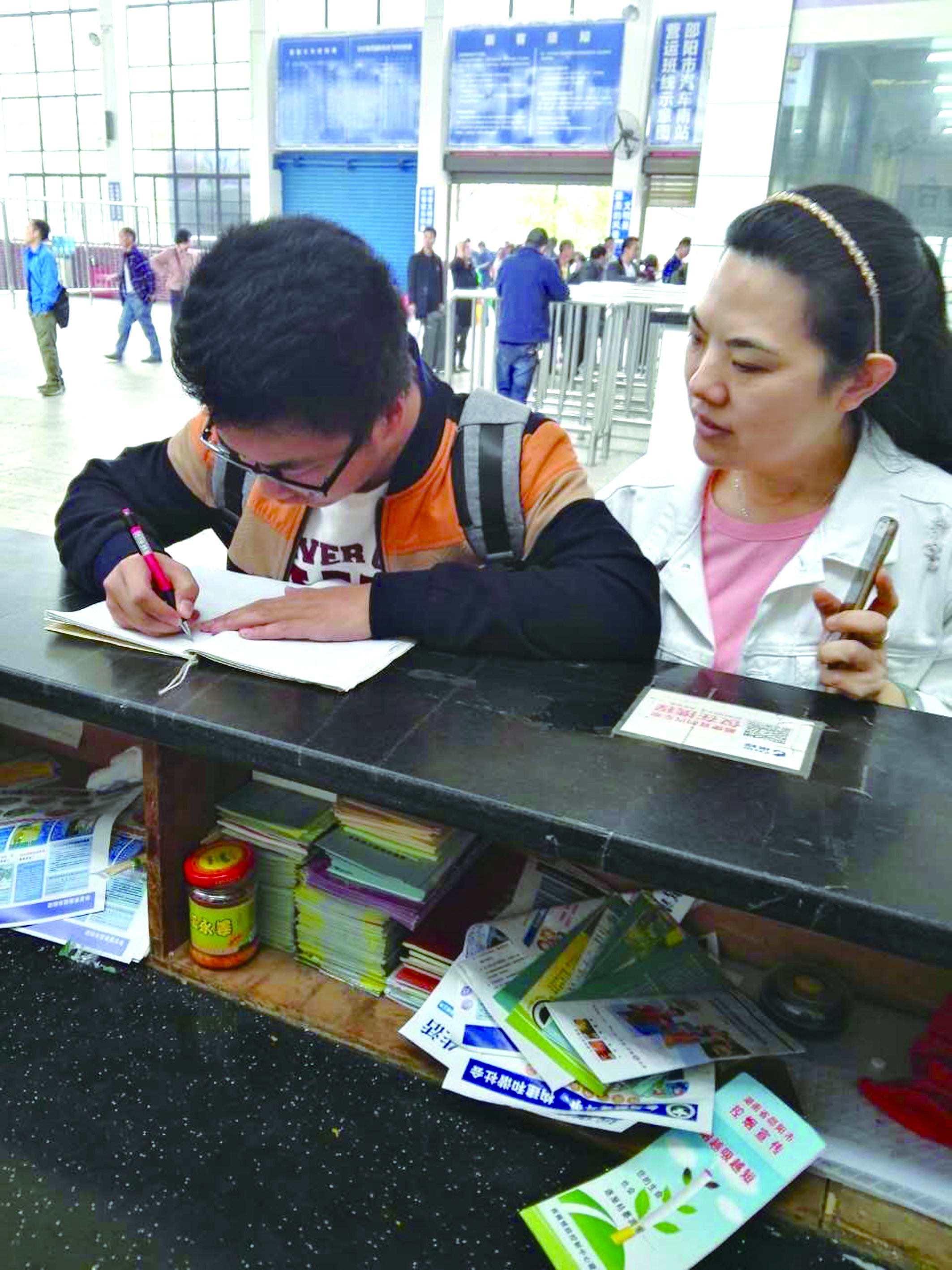 (徐容芳報道) 4月6日上午,市汽車南站的客流高峰還在持續(xù),售票廳買票上車的旅客絡(luò)繹不絕,正在安檢機前值班的員工周擁軍有條不紊的指揮著購票進站的旅客把大包小包的行李過機安檢。11時許,旅客漸漸稀少,周擁軍拿起桌上的杯子想喝口水,這時他卻無意中發(fā)現(xiàn)安檢機傳送帶旁有一個背包在地上。于是,周擁軍撿起趕緊喊剛過去的幾個旅客,但都說不是他們的,周擁軍趕緊將包拿到該站總服務(wù)臺,廣播員連續(xù)廣播失物認領(lǐng)七八次仍沒人領(lǐng)取。12時左右,一學生模樣的大男孩匆匆來到服務(wù)臺認領(lǐng)自己的背包,在確認旅客身份后,值班副站長張紅文把包交還給了此男孩,其非常感激連說謝謝,并從包里拿出紙和筆來,伏在服務(wù)總臺匆匆寫了一封感謝信,才登上了發(fā)往長沙西站的班車。