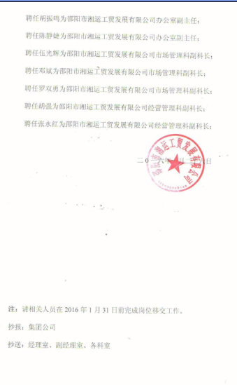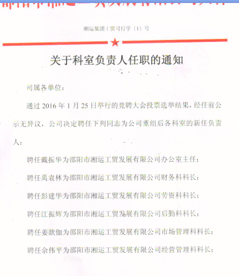 湘運(yùn)集團(tuán)工貿(mào)司行字(1)號(hào)